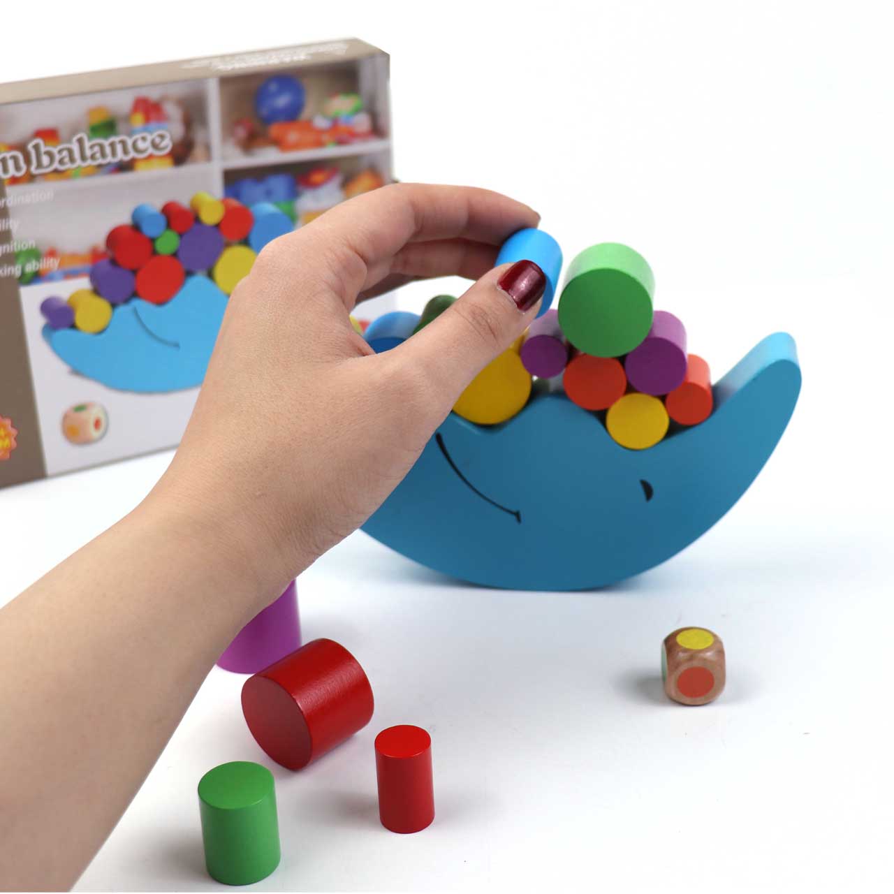 استوانه های رنگی به همراه ماه چوبی🌙 استوانه های رنگی روی ماه قرار دهید طوری که تعادل ماه حفظ بشه🤩 اگه ریخت اشکالی نداره دوباره این کارو امتحان کنن😍