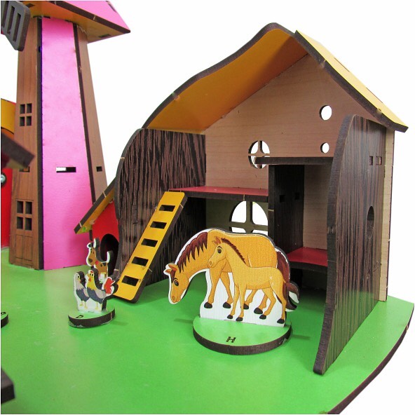 دراین محصول کودکان در عین حال که خود به راحتی می توانند قطعه های دهکده را کنار هم قرار دهند و از آن لذت ببرند. کودکان با کمک بوروشوری که داخل کیت قرار دارد میتوانند دهکده چوبی خود را بسازنند.