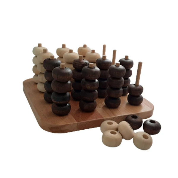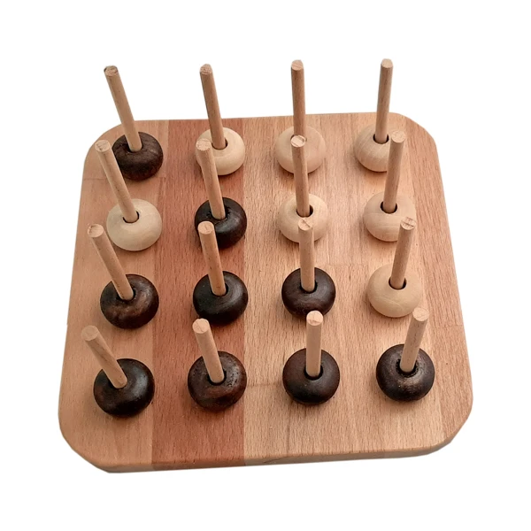این بازی بصورت دونفره انجام میشود.یک بازیکن مهره های سفید و یک بازیکن مهرههای قهوه ای را برمیدارد . بـایـد مهره ها را داخـل میله های تخته جـوری قـرار دهید که یک خط مستقیم و یا مورب سه تایی را بـا مهره های خـود بسازید و حـیـن بـازی بـاید جلوی خـط ساختن حریف خود را نیز بگیرید و مواظب باشید اون جلوی شما را نگیرد!