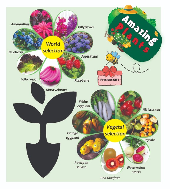 – 5 عددگلدان پلاستیکی، خاک،بذر کیوی سرخ. بادمجان نارنجی گلدانی. فیسالیس. کدو ستارهای.چای ترش وبادمجان سفید