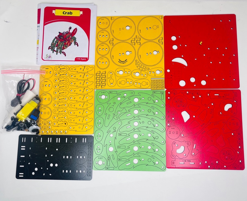 ربات خرچنگ ساختنی برای کودکان یک اسباب بازی تا با استفاده ازقطعات مختلف یک ربات خرچنگ را خودشان بسازند این ربات نیاز به مهارت و دقت بیشتری برای ساخت دارد برای کودکان بزرگتر .